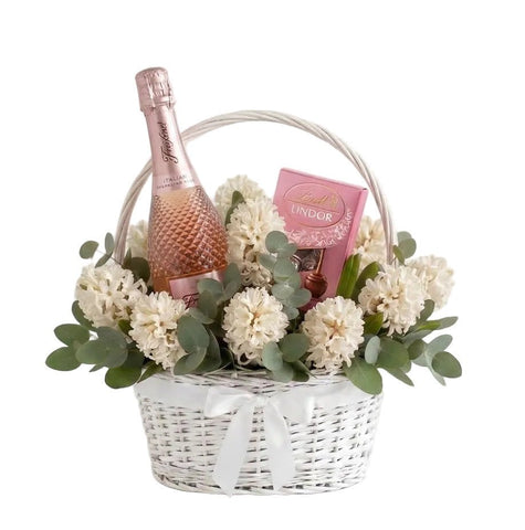 Hyacinth Hamper with Wine & Chocolate – A Perfect Gift Box