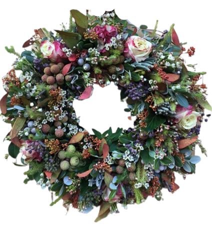 - Viburnum Black Berry: add a pop of color and seasonal flair to the wreath, evoking the magic of winter.