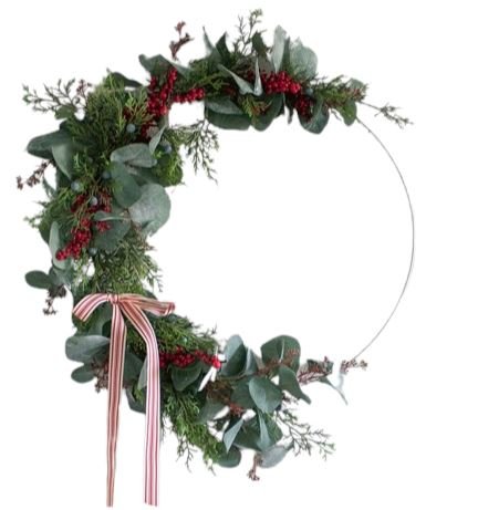 Perfect for hanging on doors, above fireplaces, or as a centerpiece, the Eucalyptus and Berry Moon Wreath is ideal for anyone looking to infuse their home with natural elegance and holiday cheer. The combination of fresh greenery, festive berries, and classic red accents makes this wreath a versatile and timeless addition to your holiday decorations.