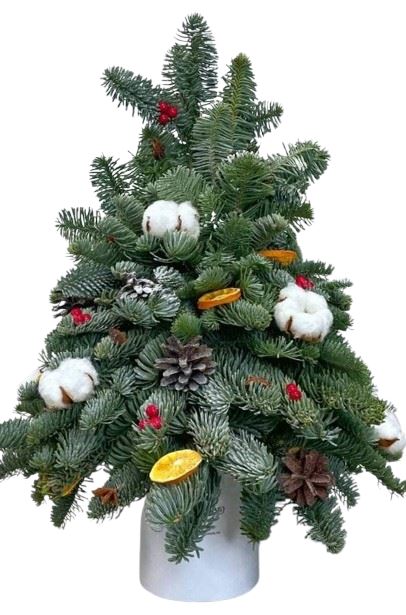 Evergreen Spruce Winter Tree Arrangement – add a natural touch to your seasonal decor! Crafted from lush, fresh spruce, this winter arrangement embodies the pure essence of the outdoors, bringing a serene and timeless holiday charm to any space.