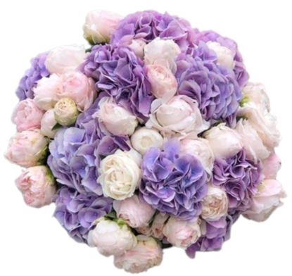 - Lilac Hydrangea: are known for their large, globe-like clusters of small flowers. Lilac hydrangeas, with their soft purple hue, symbolize understanding, patience, and heartfelt emotions. They add a lush, voluminous, and textural element to the bouquet, creating a visually stunning and elegant base.