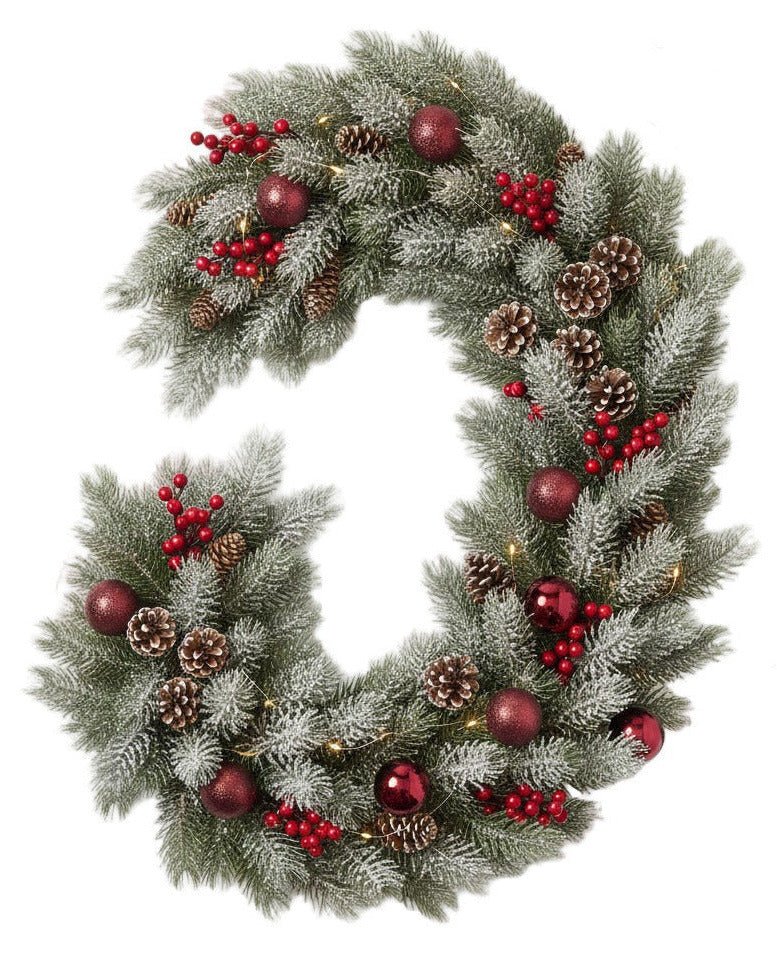 The Festive Snowing Spruce and Pine Garland with Red Baubles and Lights is a stunning Christmas decoration designed to bring warmth, sparkle, and a touch of winter magic into your home. Crafted from lush spruce and pine branches, lightly frosted to resemble freshly fallen snow, this garland evokes the charm of a snowy forest while maintaining a luxurious holiday feel. Durable and expertly designed, this garland adds instant charm and holiday spirit to any space — perfect for homes, offices, events, or as a luxurious gift for loved ones. Its snow-kissed look and vibrant red details make it a standout piece that transforms everyday surroundings into a winter wonderland.
