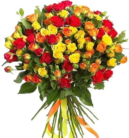 Delight someone special with the charm and color of our Flower Fairy Bouquet, a joyful arrangement featuring red, yellow, and orange spray roses. This vibrant bouquet is full of life and warmth, offering a playful yet elegant way to brighten any day. Perfect for birthdays, thank-you gifts, celebrations, or "just because," the Flower Fairy Bouquet brings a touch of magic and sunshine to any moment. Its mix of bright, miniature roses creates a stunning and cheerful floral display.