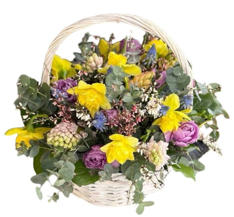 Delight the senses with our Fragrant Basket of Hyacinth and Daffodils, a beautifully arranged floral display bursting with springtime charm and fragrance. Overflowing with vibrant seasonal blooms and lush greenery, this basket is a perfect centerpiece or gift to bring warmth, color, and joy into any space. Thoughtfully arranged in a rustic-style basket, this seasonal floral display is ideal for home décor, thoughtful gifts, or as a centerpiece for spring celebrations. The combination of textures, vibrant hues, and floral fragrance makes this basket a standout piece.