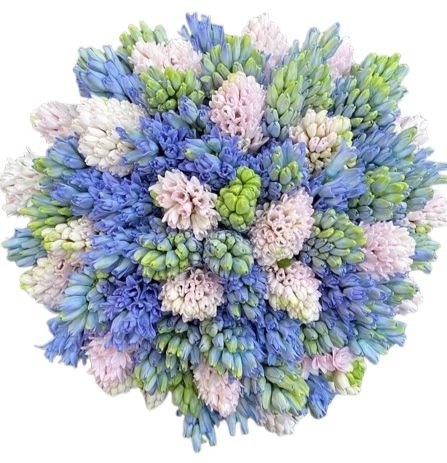 Indulge in the sweet, captivating scent of our Fragrant Bouquet of Blue and Pink Hyacinth. This exquisite arrangement blends the rich fragrance of blue and pink hyacinths, creating a fresh and elegant bouquet that will fill any room with a beautiful, soothing aroma.