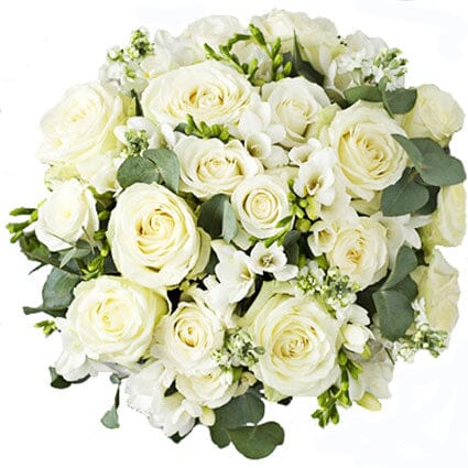 Experience the beauty of pure white blooms with our Fragrant Bouquet of White Roses and Freesias, a sophisticated arrangement designed to captivate the senses. Combining the timeless charm of white roses, the delicate fragrance of freesias, and the fresh greenery of eucalyptus, this bouquet is perfect for any occasion — whether it’s a romantic gesture, a heartfelt sympathy gift, or simply a way to brighten someone’s day. Ideal for weddings, anniversaries, birthdays, or as a heartfelt sympathy gesture, this bouquet embodies purity, love, and serenity. The sweet aroma of freesias enhances the timeless charm of white roses, making it a truly memorable floral gift.