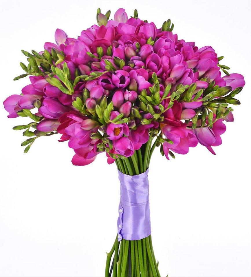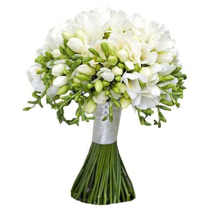 Walk down the aisle with the timeless beauty of the Fragrant Freesia Bridal Bouquet. Known for their delicate blooms and sweet, intoxicating scent, freesias flowers are the perfect choice for a romantic and elegant wedding bouquet. Customize your bouquet by selecting from a range of stunning freesia colors, including classic white, soft pink, vibrant purple, sunny yellow, or a beautiful mixed arrangement.