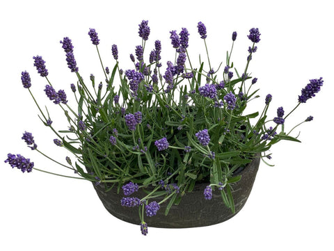 This lovely arrangement features a vibrant lavender plant, known for its soothing fragrance and beautiful purple blooms, thoughtfully potted in a sleek elliptic ceramic container. Perfect for adding a touch of calm and elegance to indoor or outdoor spaces. Bring serenity, scent, and style to your home with this beautiful lavender arrangement — where natural wellness meets elegant design.