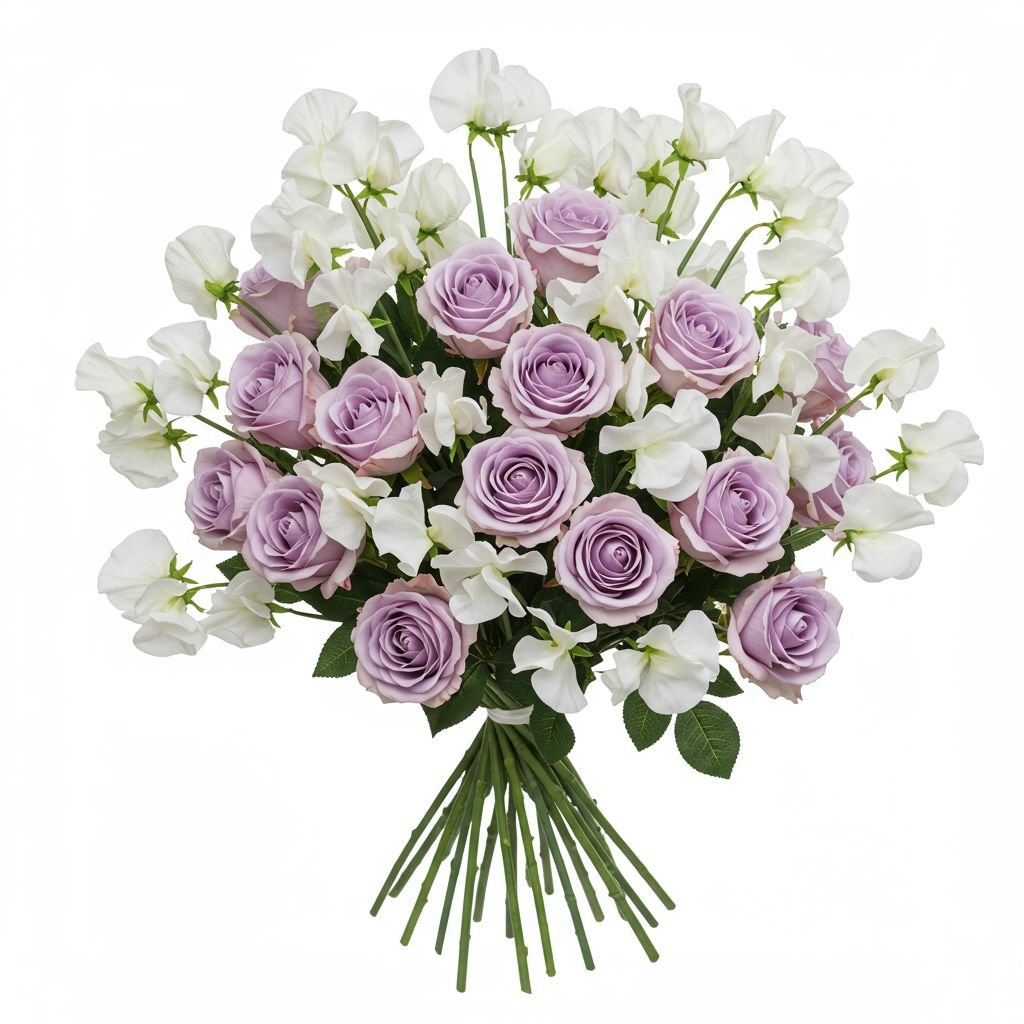 Celebrate life’s special moments with our Fragrant Sweet Pea with Roses Bouquet, a beautifully scented and stylish floral gift. This bouquet features delicate white sweet pea flowers, known for their soft fragrance and graceful appearance, paired with premium roses in the color of your choice — from classic red to soft pastels or elegant white.