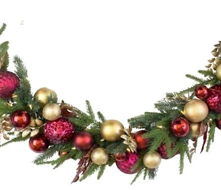 Fresh Garland with Gold and Red Christmas Ball in natural spruce will surely bring a festive atmosphere to your surroundings. Very classic and charming christmas garlands with delivery in all UK and garlands delivery in London.