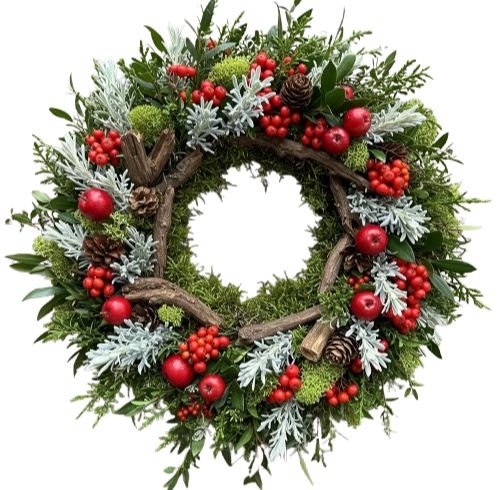 Invite the beauty of nature to your doorstep with the Frosted Woodland Berry Door Wreath, a timeless piece that blends rustic charm with festive sophistication. Embrace the magic of winter with the Frosted Woodland Berry Door Wreath from Flowers Box London. This enchanting wreath features lush evergreen foliage, frosted accents, and bright red berries for a natural yet festive look. Perfect for dressing your front door, mantle, or interior walls, it brings warmth and holiday spirit to any space. Beautifully handcrafted with attention to detail, this wreath is ideal for Christmas, winter celebrations, or as a seasonal gift. Enjoy timely delivery across London and throughout the UK, ensuring your Frosted Woodland Berry Door Wreath arrives fresh and ready to display.