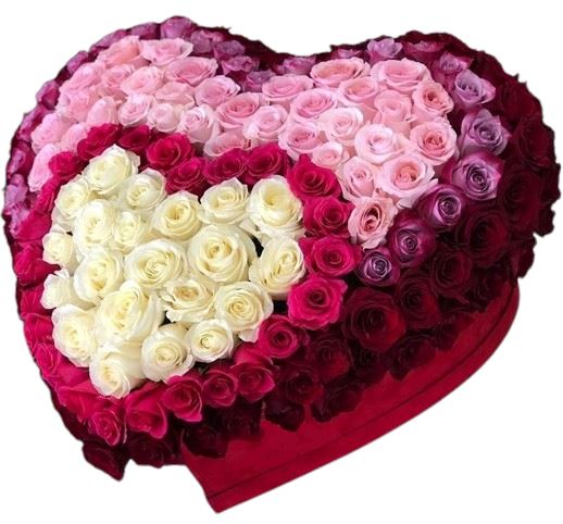 Glamour Gradient Roses Heart Box – A Symphony of Colors