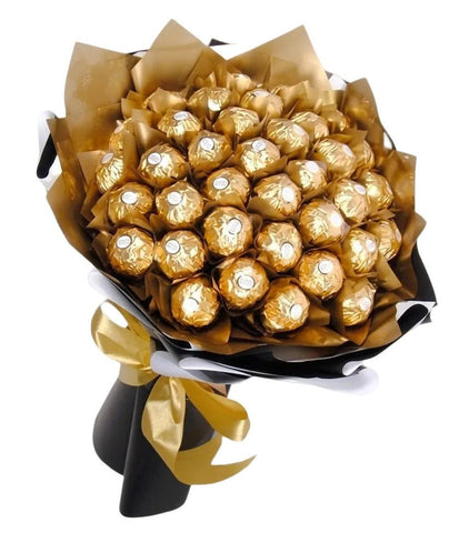 The Gold Chocolate Bouquet is a delightful and luxurious gift that will make any recipient feel special and appreciated.