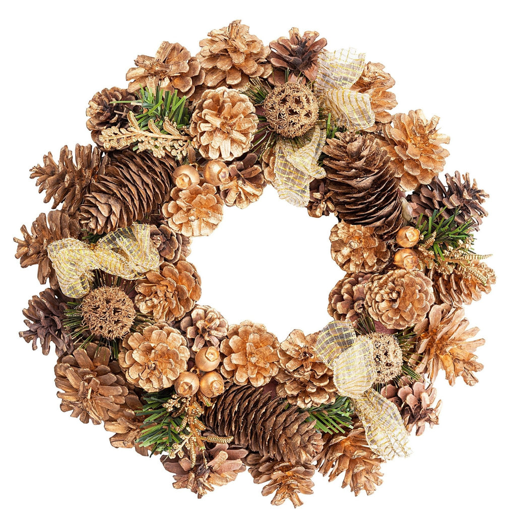 - Natural Gold-Plated Cones: add an opulent touch to the wreath. The natural cones, carefully plated in gold, bring rustic elegance and a hint of sparkle, enhancing the wreath's luxurious feel.