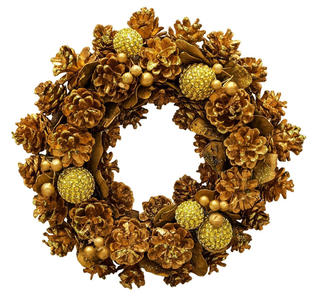 - Gold Cones: the wreath is embellished with exquisite gold pine cones, adding a rustic yet refined texture that enhances its luxurious appearance.