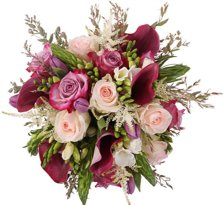 Delicate, refined, and stunningly arranged, the Gorgeous Bouquet of Calla Lily and Roses is a floral masterpiece designed to impress. With a lush blend of cerise and pink roses, purple calla lilies, pink tulips, and soft white florals, this bouquet is perfect for weddings, anniversaries, or any elegant celebration. Finished with airy parvifolia, it offers both beauty and sophistication in every bloom. Perfect for a bride, a milestone gift, or simply to bring joy to someone special, the Gorgeous Bouquet of Calla Lily and Roses is a premium floral design full of depth, meaning, and refined beauty.