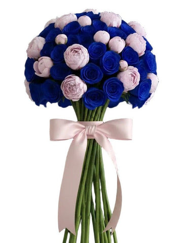 Experience true floral elegance with the Gorgeous Bouquet of Peonies with Blue Roses at Flowers Box London. This stunning arrangement pairs the soft, voluminous beauty of peonies with the rare and captivating charm of blue roses, creating a bouquet that feels both romantic and unique. The combination of delicate peony petals and bold blue tones forms a striking visual contrast that stands out for special occasions. Ideal for birthdays, anniversaries, romantic surprises, or luxury gifting, this bouquet is designed to leave a lasting impression.