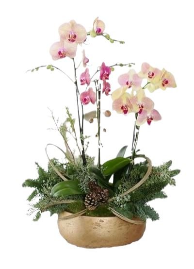 The Gorgeous Festive Phalaenopsis Orchids Arrangement is more than just décor; it’s a statement of beauty and refinement. Whether you’re hosting holiday gatherings or seeking the perfect seasonal gift, this arrangement promises to impress and enchant.