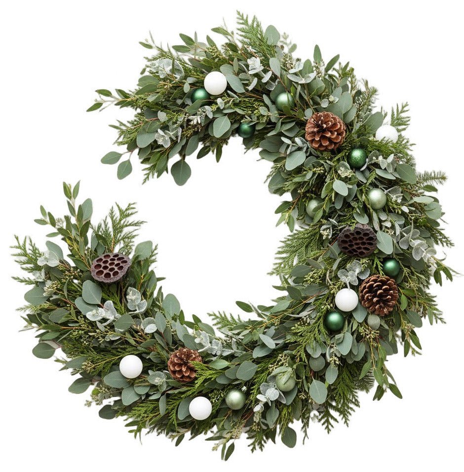Introducing the Green and White Baubles Mixed Eucalyptus Garland, a luxurious and festive decoration that brings elegance, freshness, and a touch of winter magic to your holiday décor. This handcrafted garland combines fresh greenery, seasonal accents, and stylish baubles in soft blue and white tones, creating a sophisticated and timeless look for your home. Each detail of the Green and White Baubles Mixed Eucalyptus Garland has been thoughtfully chosen to evoke the beauty and fragrance of the season.