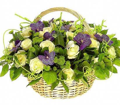 Enjoy free flower delivery in London and nationwide delivery with every purchase of the Green Land with Purple Basket bouquet.