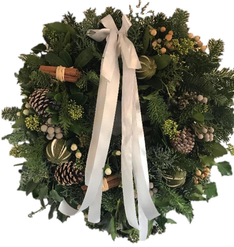 - Fresh Conifer & Spruce: a combination of fresh conifer and fresh spruce creates a lush, fragrant base, giving the wreath its full, natural look.