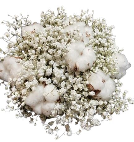 This charming bouquet symbolizes purity, warmth, and everlasting beauty, making it an ideal gift for birthdays, anniversaries, housewarmings, or simply to brighten someone’s day. The combination of airy baby’s breath and soft cotton creates a rustic yet sophisticated look that complements any setting.