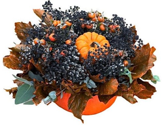 Experience the enchanting allure of the Halloween Black Baby's Breath with Pumpkins from Flowers Box London, and let this festive arrangement bring seasonal joy and a touch of whimsy to your festive celebrations. Embrace the enchantment of Halloween with this exquisite blend of botanical allure and autumnal whimsy. Send halloween arrangement with delivery to your friends or family and enjoy!