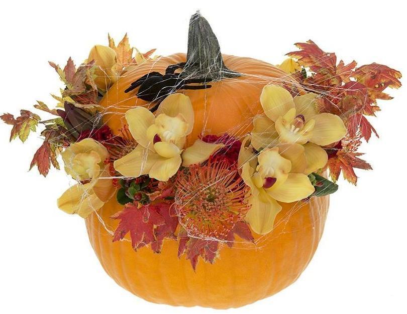 - Natural Orange Pumpkin Base: enhancing the festive and seasonal vibe. The pumpkin serves as both a vase and a key feature, making this display perfect for Halloween decor.