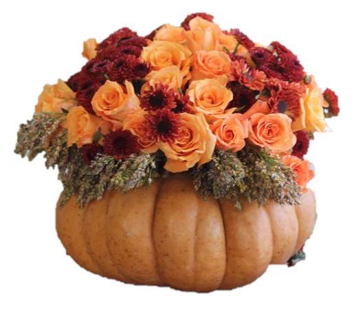 Embrace the spirit of Halloween with our Halloween Roses Pumpkin arrangement, a whimsical and festive centerpiece that combines the beauty of roses with the charm of a pumpkin. This unique display features vibrant roses in rich autumnal hues, artfully arranged in a decorative pumpkin, creating a stunning contrast that captures the essence of the season. Perfect for halloween parties, seasonal décor, or as a delightful gift, this arrangement adds a touch of elegance and festivity to any space. Whether placed on your dining table, used as a centerpiece for a halloween party, or gifted to a friend, the Halloween Roses Pumpkin arrangement is sure to impress. It’s a delightful way to celebrate the holiday while showcasing the beauty of fall blooms.