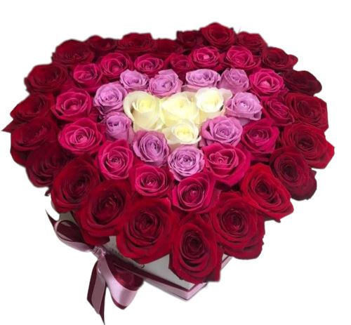 The Hearts of Tenderness Luxury Box is a breathtaking collection of roses, carefully selected to create a harmonious blend of colors that symbolize love, elegance, and purity. This luxurious flowers arrangement features a stunning combination of red roses, cerise roses, lavender roses, and white roses, making it the perfect gift for expressing deep emotions or adding a touch of grace to any occasion.