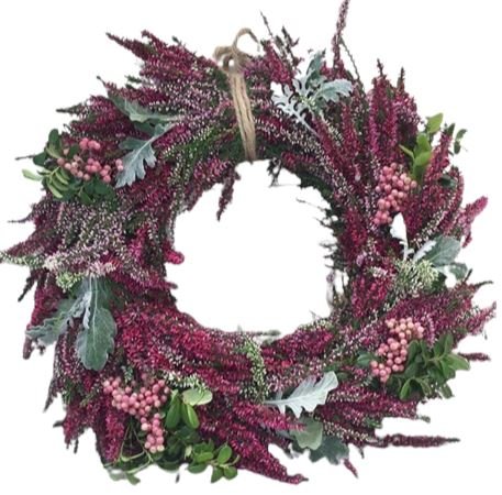 - Dark Pink Heather: adds depth and elegance to the wreath. Its unique texture and color create a striking contrast, making it a beautiful focal point for your entryway.