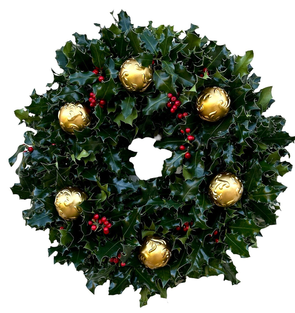 Holly Christmas Wreath with Gold Baubles - A Festive Touch for Your Home