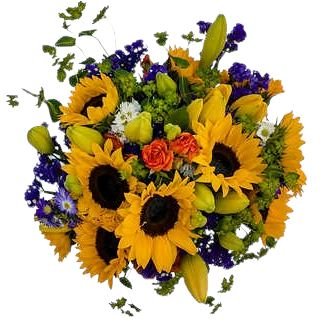 This stunning bouquet features a perfect blend of sunflowers, lilies, and purple statice accents, creating a breathtaking display that brightens any event. Whether you're celebrating a milestone, expressing gratitude, or simply bringing joy to someone's day, this exquisite bouquet is the ideal choice. We proudly offer delivery to any address across the UK, ensuring your gift arrives with impeccable style and beauty.