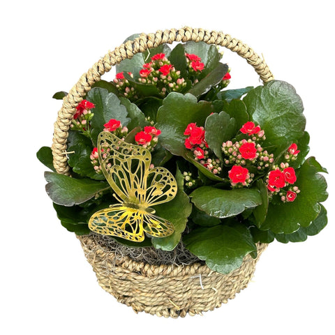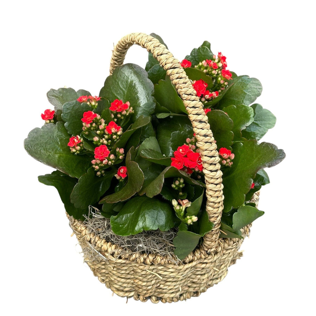 Kalanchoe Plants in Round Basket with Handle – Elegant Indoor Gift