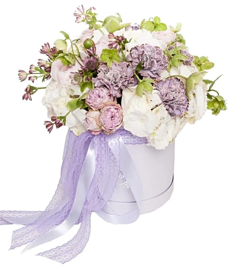 Lavender and White Box: A Graceful and Serene Floral Arrangement