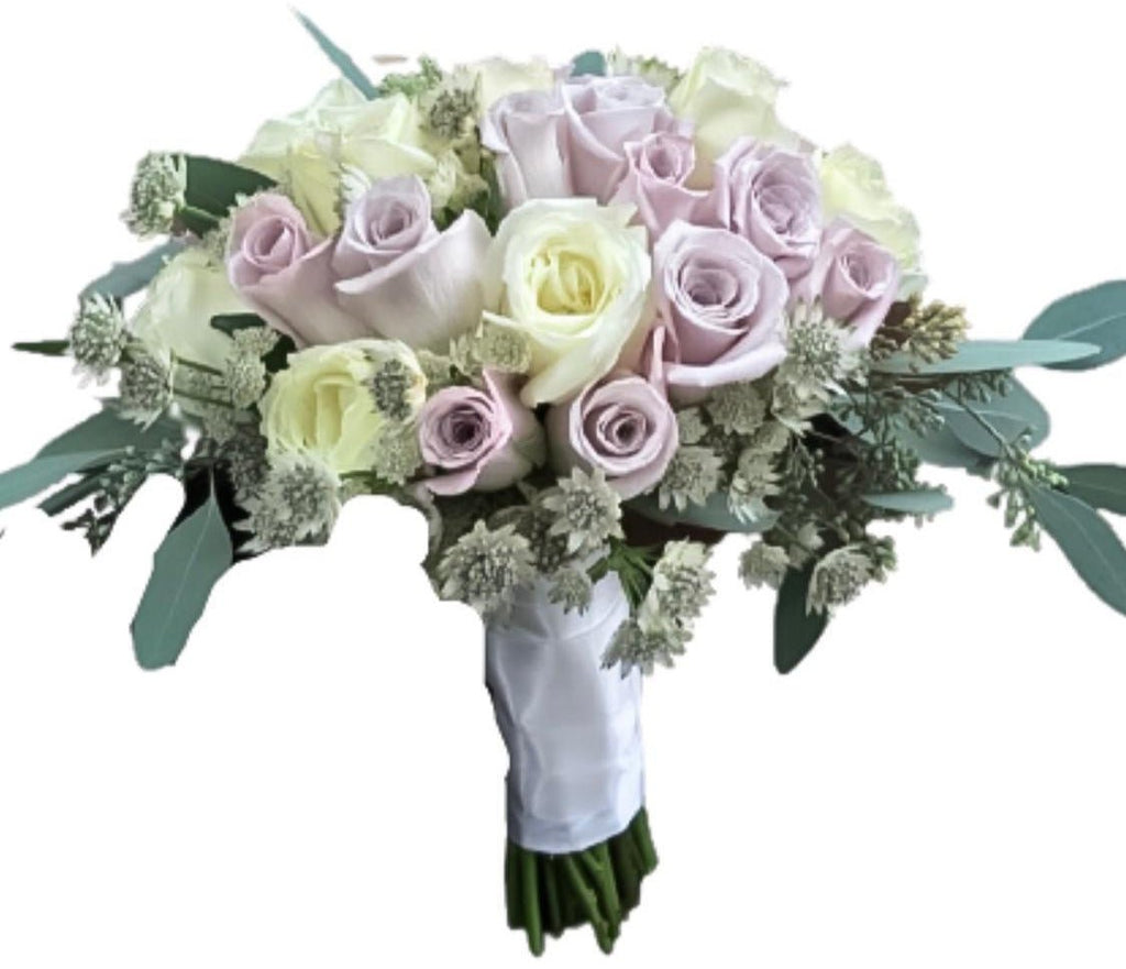 With its delicate hues and graceful allure, our Lavender Bridal Bouquet serves as the focal point for your floral decor, promising a celebration adorned with beauty and charm. Make your wedding unforgettable with this enchanting bouquet as the centerpiece of your floral ensemble. Crafting a Lavender Bridal Bouquet with a combination of lavender roses, white roses, white astrantia, and eucalyptus creates a beautiful and fragrant arrangement perfect for a bride seeking a romantic and elegant look.