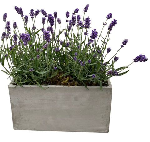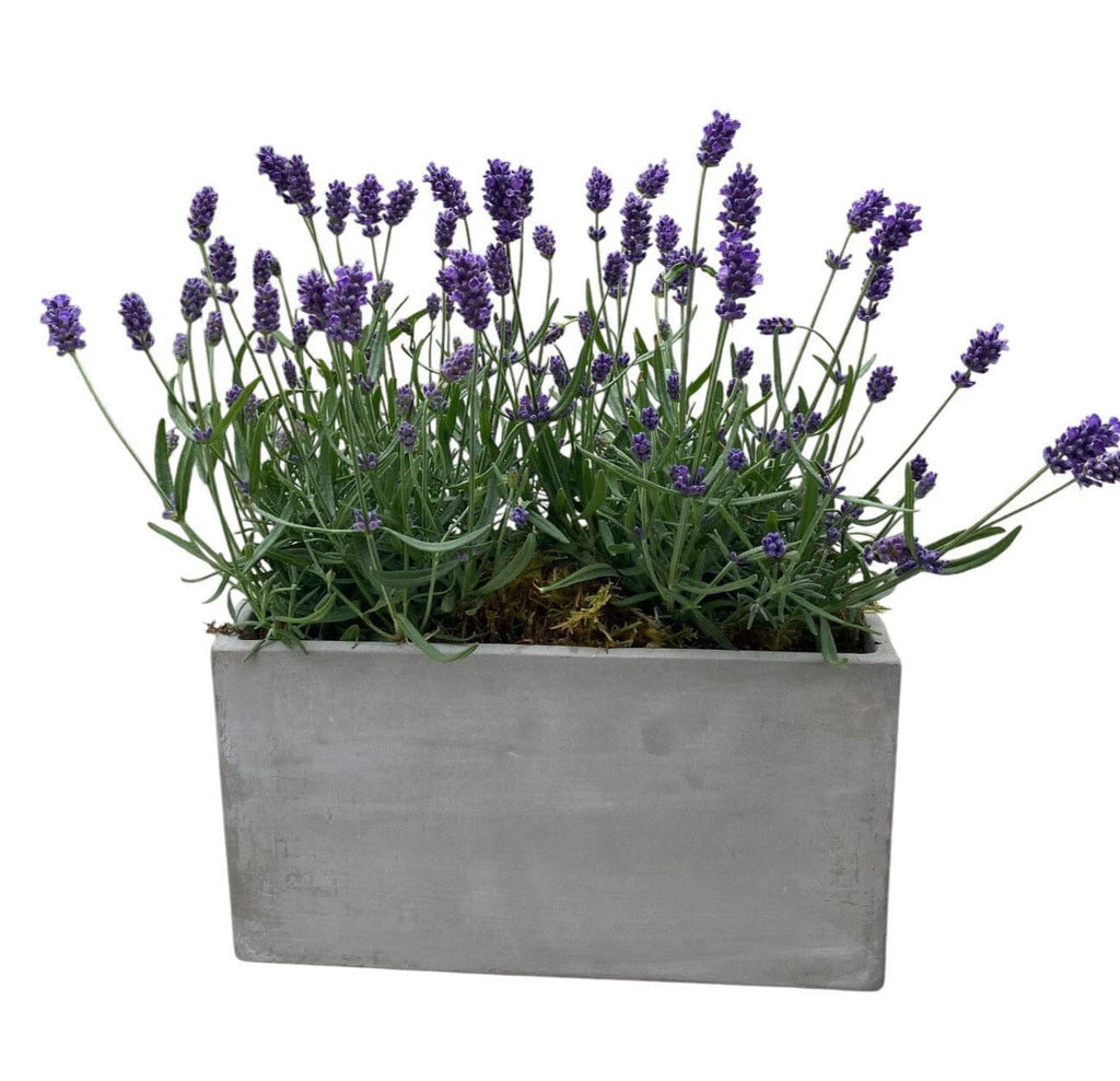 Lavender in Rectangle Cement Pot – Rustic Charm with Calming Elegance