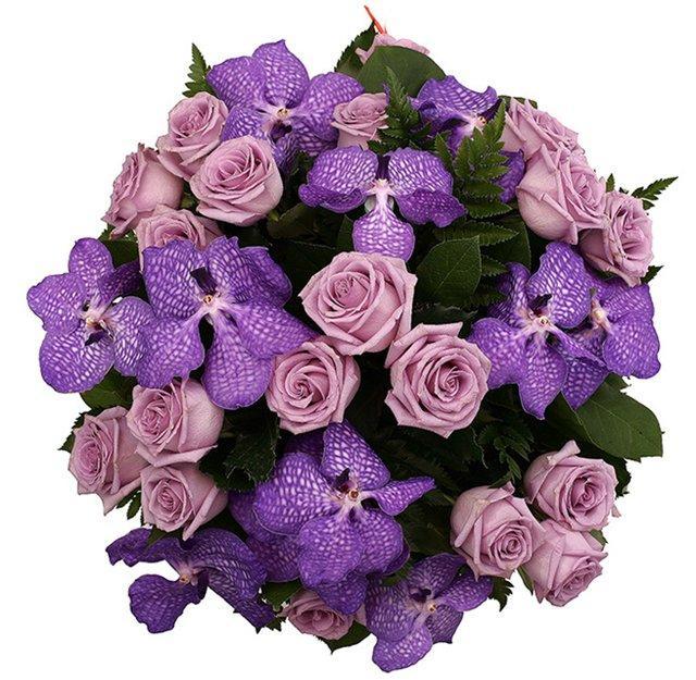 Indulge in the beauty of elegance and sophistication with our Lavender Roses with Orchids arrangement. Featuring exquisite lavender roses, vibrant purple Vanda orchids, and lush greenery, this breathtaking bouquet is the perfect way to make any occasion unforgettable. Beautiful lavender roses with the addition of purple Vanda Orchids . This beautiful bouquet of orchids and roses is the perfect bouquet to send to a loved one or even yourself! Thanks to the orchid flowers, this bouquet makes a truly distinctive gift. Send this bouquet for a special birthday, house warming, anniversary or any other upcoming occasion.