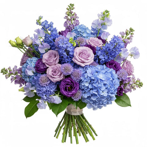 Whispers of Lavender – Sweet Peas & Blue Hues in a Romantic Bouquet