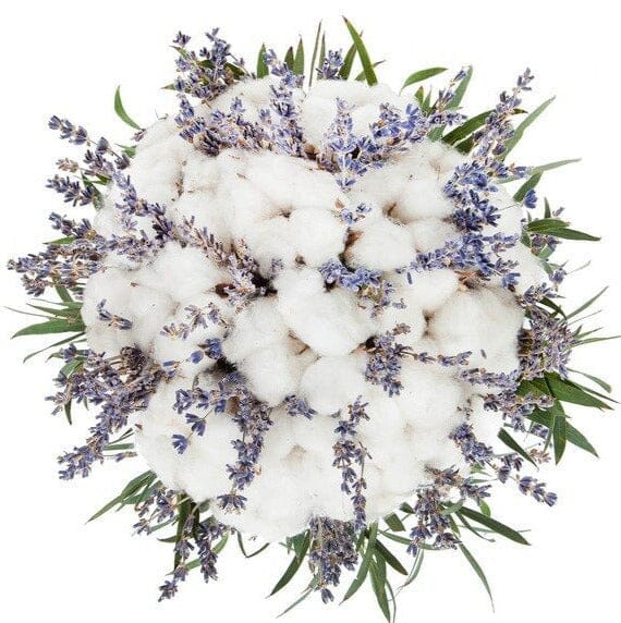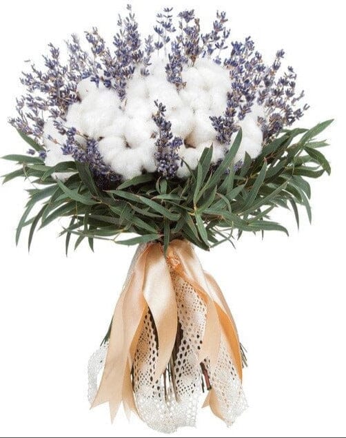 - White Cotton: bring a cloud-like texture to the bouquet. Their purity and simplicity perfectly complement the vibrant lavender, creating a striking yet harmonious balance.