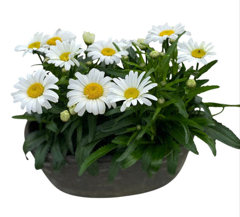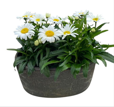Paired with a sleek and stylish elliptic ceramic pot, this plant adds a refined touch to both modern and rustic interiors. The minimalist design of the pot beautifully contrasts the wildflower-like aesthetic of the daisies blooms, creating a balanced, decorative piece that suits any setting. Whether you're gifting greenery or refreshing your own space, this low-maintenance plant is a cheerful and thoughtful choice.