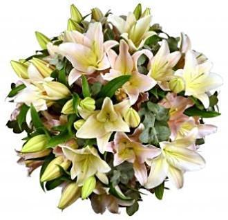 Indulge in the delicate beauty of our Light Pink Lily with Eucalyptus Bouquet. This exquisite arrangement features soft, light pink lilies paired with fragrant eucalyptus leaves, creating a charming ensemble that captivates the senses. The gentle hue of the lilies exudes elegance, while the refreshing aroma of eucalyptus adds a touch of natural allure. Perfect for expressing sentiments of admiration, appreciation, or congratulations, this bouquet is sure to make a lasting impression.