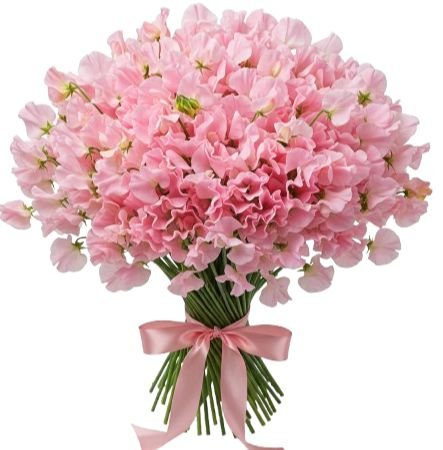 Light Pink Sweet Pea: are known for their delicate, ruffled petals and delightful fragrance. Light pink sweet peas symbolize grace, gentleness, and blissful pleasure. They add a soft and romantic touch to the bouquet with their pastel pink hues and elegant, cascading blooms.