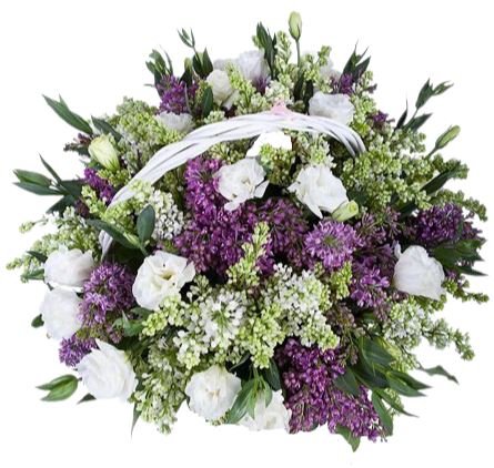 Introducing our Lilac with Lisianthus Basket, a charming arrangement that exudes elegance and grace. This delightful composition combines the delicate beauty of lilac blooms with the pristine allure of lisianthus flowers, creating a captivating display that is sure to impress. Crafted with care and attention to detail, our Lilac with Lisianthus Basket is the perfect choice for any occasion. Whether you're celebrating a special milestone or simply want to brighten someone's day, this exquisite arrangement is sure to leave a lasting impression. A Lilac with Lisianthus Basket - a delightful blend of fragrant lilacs and elegant lisianthus, meticulously arranged to bring joy to your loved ones' doorstep, no matter the distance!