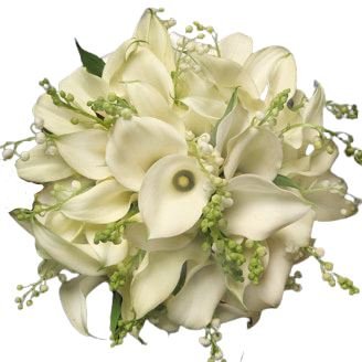 Interwoven with the Lily of the Valley blooms, the smooth, elongated forms of Calla Lilies add a touch of contemporary elegance. With their sleek, trumpet-shaped blossoms and long, slender stems, Calla Lilies exude a sense of refinement and sophistication. Their pristine white petals symbolize purity, innocence, and the beauty of new beginnings. Together, these two floral treasures create a harmonious union of purity and sophistication, making this bouquet a perfect choice for weddings, anniversaries, or any occasion where love and elegance intertwine.