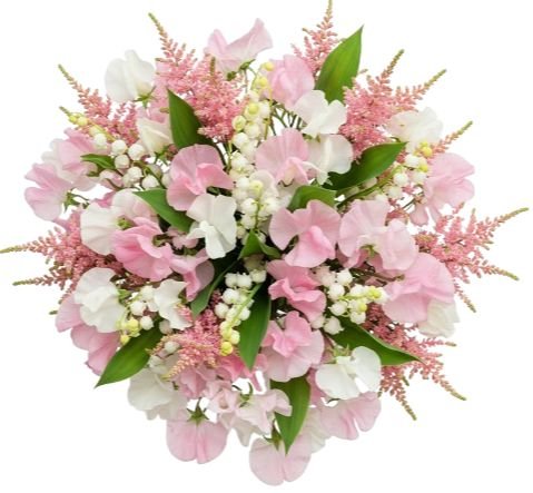 Indulge in the delicate beauty of our Lily of the Valley with Sweet Pea and Astilbe Bouquet, a charming ensemble that captivates with its ethereal allure. Crafted with care and artistry, our Lily of the Valley with Sweet Pea and Astilbe Bouquet is a celebration of love, beauty, and the wonders of nature.