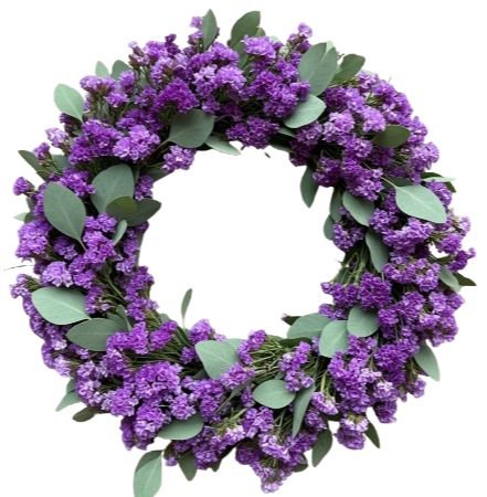 Welcome timeless beauty into your home with our Limonium with Eucalyptus Door Wreath — a stunning handcrafted design that combines the delicate charm of limonium with the fresh, aromatic appeal of eucalyptus populus. Perfect for adding a touch of natural elegance to any door or wall, this wreath brings a sense of serenity and sophistication to your space year-round. The limonium, available in your choice of color, adds a soft, textured look with its graceful clusters of blossoms, symbolizing remembrance and lasting beauty. Complemented by eucalyptus populus, known for its rich greenery and soothing fragrance, this wreath offers both visual appeal and a refreshing aroma.