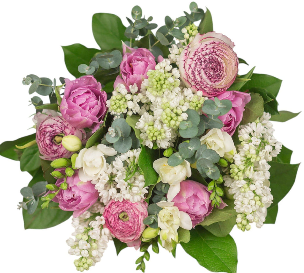 - White Lilac: exudes elegance and purity, with its delicate clusters of blossoms and sweet fragrance. It symbolizes innocence, renewal, and memories of springtime, adding a touch of sophistication to the bouquet.