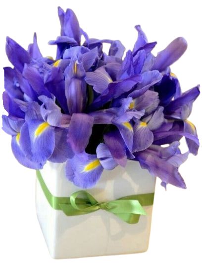 - Irises (color to choose from): choose from a selection of vibrant iris colors, including classic purple, striking blue, delicate white, or soft yellow. Each iris symbolizes hope, faith, and wisdom, making them a meaningful and beautiful gift.