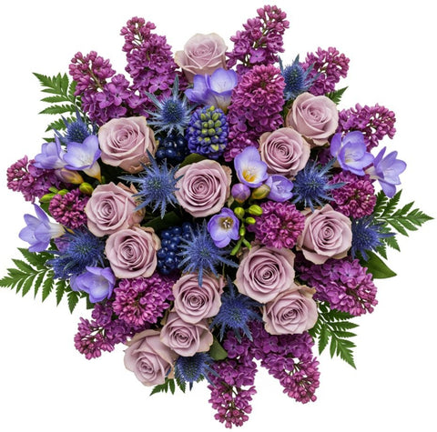 Whether adorning a table as a centerpiece or brightening up a room as a decorative accent, the Lush and Lavender Bouquet brings a sense of natural beauty and tranquility to any occasion. Its timeless elegance and refreshing allure make it a perfect choice for adding a touch of botanical charm to weddings, events, or everyday spaces.